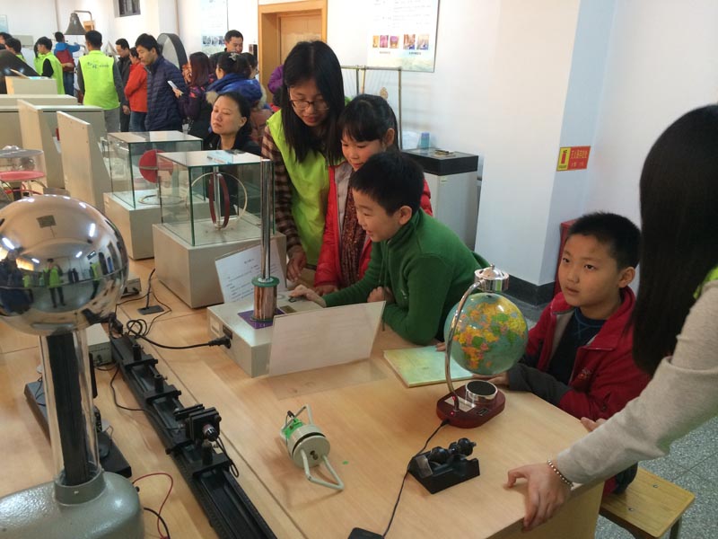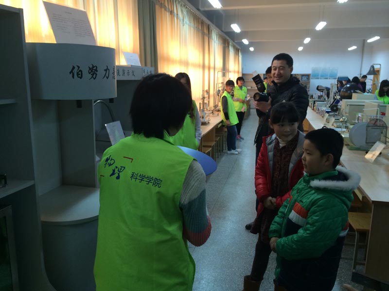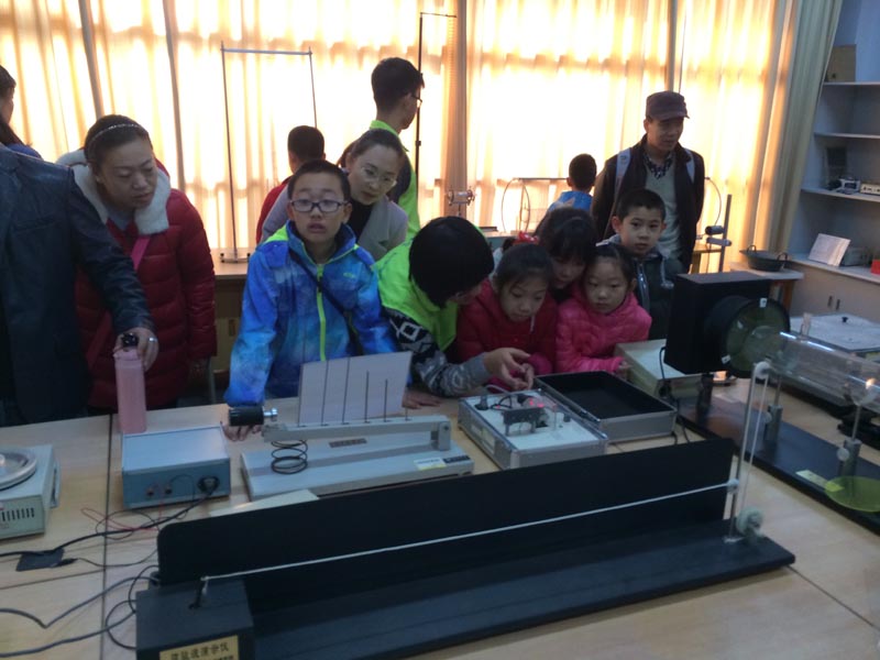 物理教学示范中心演示实验室迎来了一批特殊的小客人,他们是来自桦川路小学的小学生及其家长。