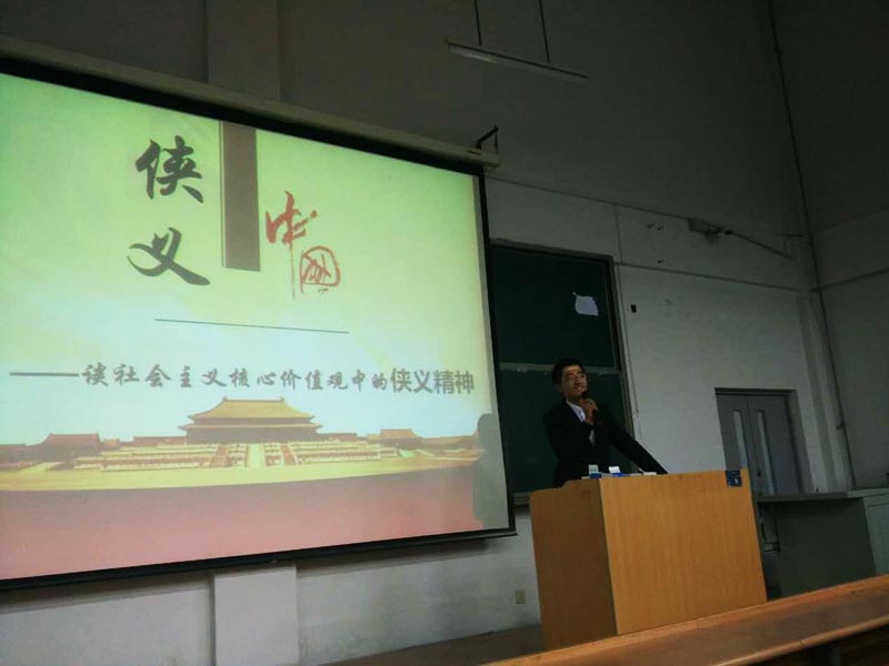 “青春践行社会主义核心价值观之传统文化”讲座在此举行。一场政治学习报告怎会有这么多同学参加呢?原来,这次讲台上的主角是学生,整场报告完全由学生自主完成。