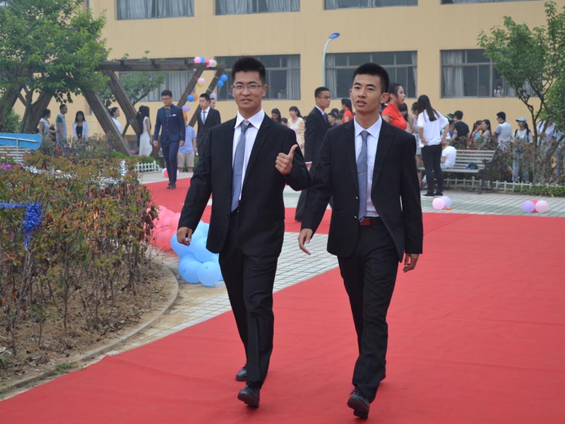 本次典礼以毕业生的“才子佳人”红毯秀拉开帷幕,每位毕业生在个性风趣的解说中身着靓丽的服装或三三两两,或独自优雅帅气地走过红毯,现场摄影人员定格他们最美丽的瞬间,每位毕业生在红毯尽头的签名板上留下签名。参加典礼的领导老师们也在身着盛装的毕业生陪伴下,走过红毯,并与毕业生代表一起切下象征祝愿、进步的蛋糕,一起分享青春的美好。