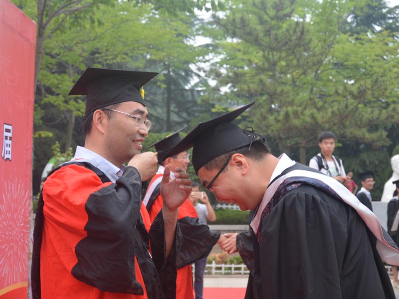 典礼最后是授予学位仪式,由学院党委书记徐龙飞、院长孔伟金为每一个学位获得者扶正流苏,并与毕业生合影留念。