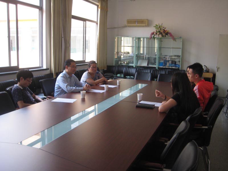 学院94级应用物理专业校友民盟青岛市委副秘书长陈洁、Spansion青岛分公司经理毛建荣、青岛华城市政设计院造价主管赵福文与获得奖助金的2012级本科生宋丛丛、2014级研究生刘奥从生活、学习、职业规划等方面进行了深入交流,鼓励他们发挥物理人的务实严谨作风,做学问做工作都要脚踏实地、扑下身子去干,同时也要确立好目标,规划好成长路径。随后,三位校友与院团委书记李慧晶老师交流了在校生的职业指导与培训、学生干部培养、就业创业等方面内容,对在校生的精神面貌、学习状况都很关心,表示愿意与在校生深入交流经验,为物理学子的全面发展尽一份力。
