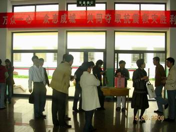 “5.12”四川汶川大地震时刻牵动着h动漫 广大师生的心,他们共计捐款2万余元,纷纷表示说,“一方有难,八方支援”是我们中华民族的伟大传统,我们一定要万众一心,抗震救灾,众志成城,就一定能渡过难关,重建家园。我们一定要维护安全和稳定,努力工作和学习,以实际行动为抗震救灾做贡献。图为物理学院师生为地震灾区捐款和沉痛悼念地震遇难人员。