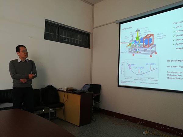 作题为《角分辨光电子能谱对物质材料的研究(Study of Materials by Angle-Resolved Photoemission Spectroscopy (ARPES))》的学术报告。报告由吕文彩教授主持,学院相关研究方向的师生参加了报告会。