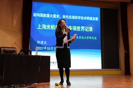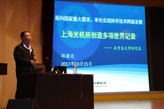 本科生素质,并鼓励青大学子报考上海光机所研究生。最后,邵建达对上海光机所在国际合作、产业化和学术期刊等方面的情况进行了说明。报告后,邵建达耐心解答了现场学生的提问,就同学们感兴趣的考研学科方向选择、本科生自我能力培养等问题进行了深入交流。