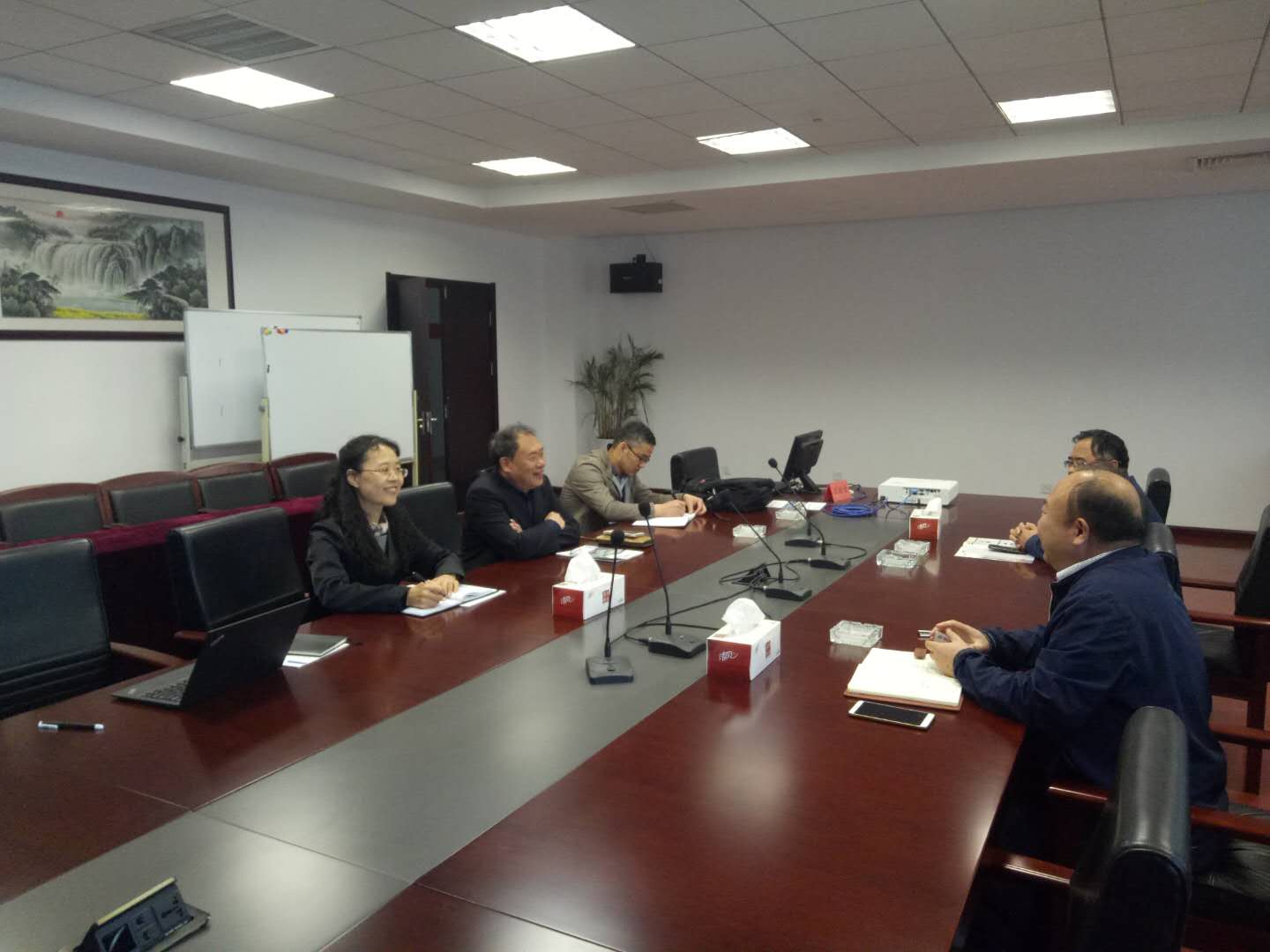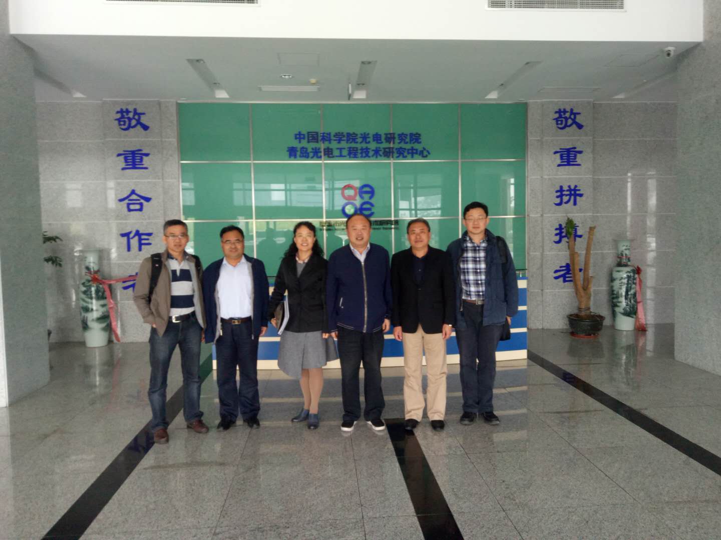 党委书记黄国俊、院长滕冰等一行4人来到青岛市光电工程技术研究院进行参观、学习和交流。