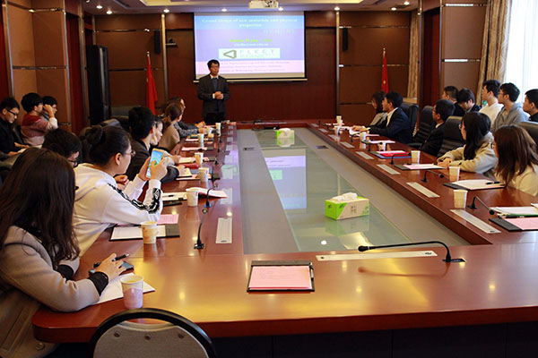 仪式结束后,王晓临作了题为《新材料和新性能的大设计原理及应用》的学术报告。王晓临在总结新材料和新性能的发展前沿基础上,提出新材料和新性能设计的新策略,以电荷Q、自旋S或旋转运动及线性运动K这三个属性产生6个原始代码,并进一步产生另外60个密码,形成“性能元素周期表”。任何复杂体系、物质和材料都可以用这3个简单的属性及其衍生密码来描述。在此基础上,王晓临介绍了“性能元素周期表”这一方法论,在超导、拓扑材料、热电材料、新型电子材料、液态金属等材料领域的最新应用研究进展。报告结束后,王晓临与师生进行了互动交流,并介绍了澳大利亚伍伦贡大学超导和电子材料研究所基本情况、研究方向和未来规划,表达了希望与国内高校加强合作的愿望。