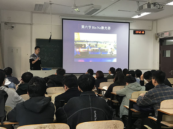 11月12日下午第5节课,荣获“第二届山东省高校物理基础课程青年教师讲课比赛一等奖”的王进老师在博远楼209教室为师生上了首堂观摩示范课“原子物理学”,11月18日上午第3节课,荣获h动漫