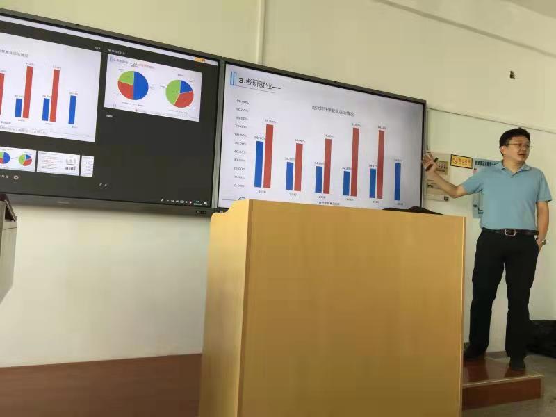 滕冰介绍了大学生考研和就业形势,鼓励同学们将自身发展目标与国家社会需求相结合,在学院温暖的大家庭里,主动完成从成人到成才的各种历练,学会独立,自我效能,打牢基础,形成正确的价值观,追求有意义的人生。