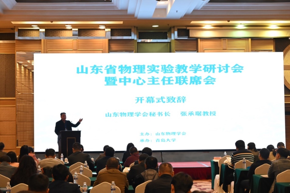 对会议的支持。随后,张承琚介绍了近两年山东高校物理实验教学方面的情况,他表示,三年的疫情对高校实验教学带来了巨大挑战,但这百年未有的局势也是实验教学改革和发展的重大机遇,希望借助这次研讨会议,大家共同努力,推进物理实验教育教学的创新和发展。