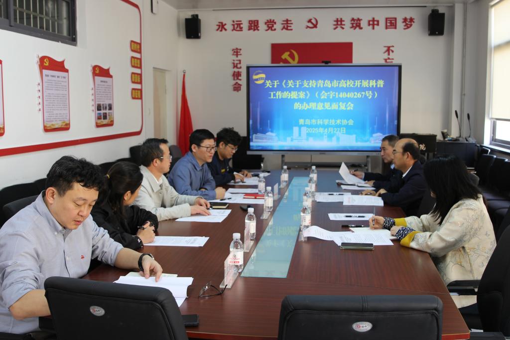,针对青岛市政协委员李强院长提交的《关于支持青岛市高校开展科普工作的提案》进行面复。学校科技处处长隋坤艳、综合办主任宋媛媛,h动漫