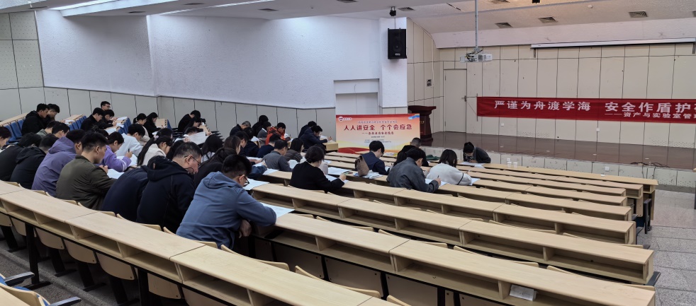 本次大赛采用团体赛形式进行,分为“理论知识竞赛”和“安全技能实操”两个环节。理论知识竞赛采用线下答题考试形式,时间为11月13日,在图书馆报告厅进行,内容覆盖化学品安全、电气安全、辐射安全、激光安全、气瓶管理与应急处置等众多方面,全面考察了参赛选手对实验室安全规章制度、操作规程及基础理论的掌握程度。