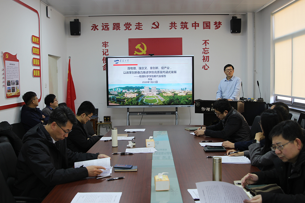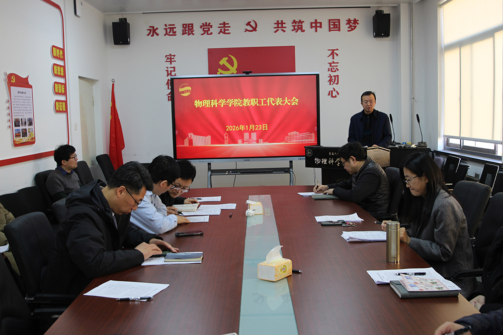 会上,李强以《厚物理、强交叉、重创新、促产业,以改革创新奋力推进学院高质量内涵式发展》为题作工作报告。报告立足学院发展实际,系统回顾了2025年各项工作的亮眼业绩,全面梳理了“十四五”期间学院在师资队伍建设、高水平平台搭建、国家级重点项目攻坚、基础研究原创突破、科技奖励斩获及拔尖人才培育等领域取得的一系列标志性成果。报告同时客观剖析了当前发展面临的短板瓶颈与现实挑战,为“十五五”发展蓝图精准把脉、科学擘画,并对2026年重点工作进行全方位部署。李强强调,“十五五”时期是学院实现跨越式发展的关键阶段,全院上下要锚定“省内领先、国内有特色、学生就业优、教师获得感强”的基础学科建设目标,深耕物理学科主业,厚植崇尚学术、尊重创新的文化土壤,构建良性循环的优质学科生态;要紧扣“四个面向”战略导向与产业发展需求,优化专业学科布局,精准引进高层次人才,打造高水平科研团队,深化产学研协同创新,力争产出更多具有影响力的标志性成果;要传承和弘扬青大物理人追求卓越、奋勇争先的精神内核,凝心聚力、真抓实干,为学校建设高水平研究型大学筑牢基础物理学科支撑。