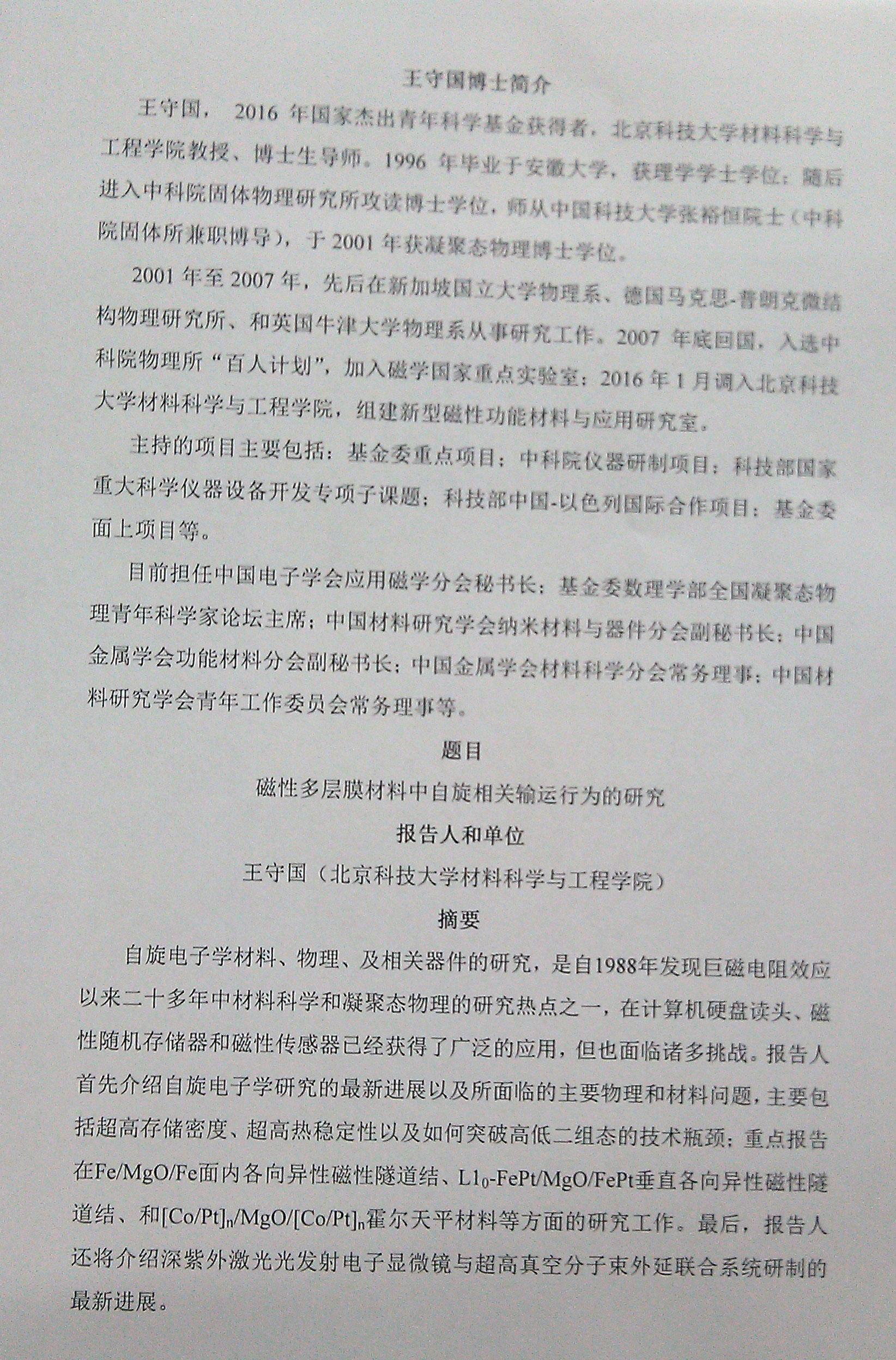 上一篇:第十八期物理前沿学术报告:何颂贤教授报告会