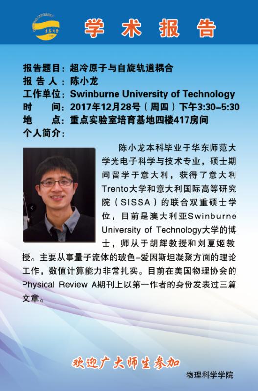 2017物理前沿学术报告第五十一讲:超冷原子与自旋轨道耦合