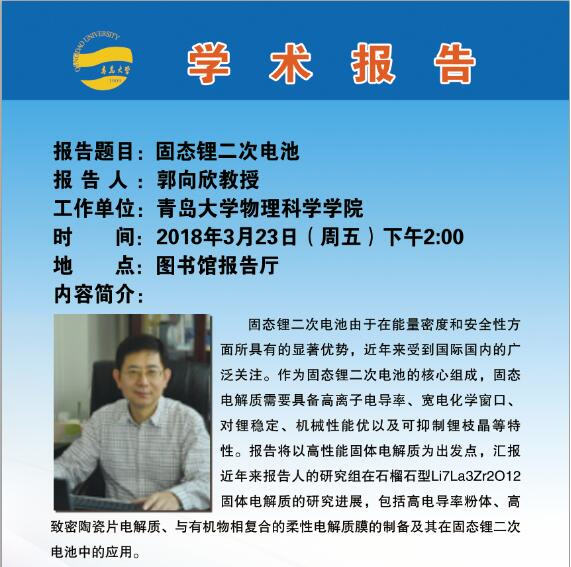 2018物理前沿学术报告第五讲:固态锂二次电池