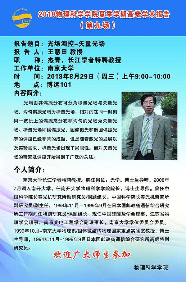 2018物理前沿学术报告第二十九讲:光场调控-矢量光场