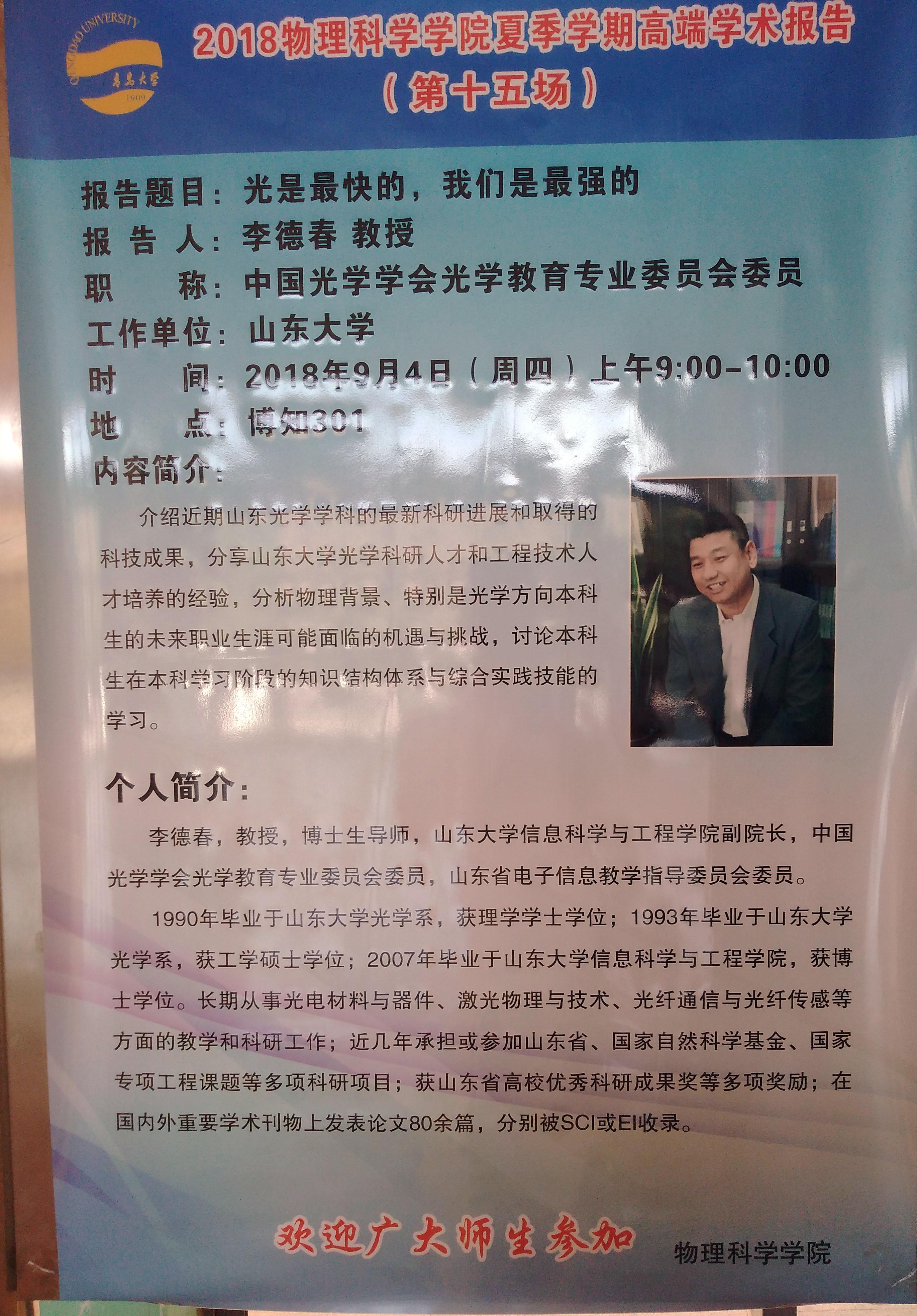 2018物理前沿学术报告第三十六讲:光是最快的,我们是最强的