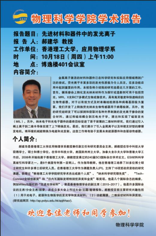 2018物理前沿学术报告第四十一讲:先进材料和器件中的发光离子