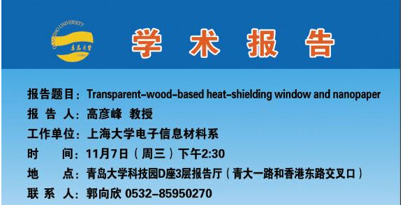 2018物理前沿学术报告第四十三讲:Transparent-wood-based heat-shielding window and nanopaper