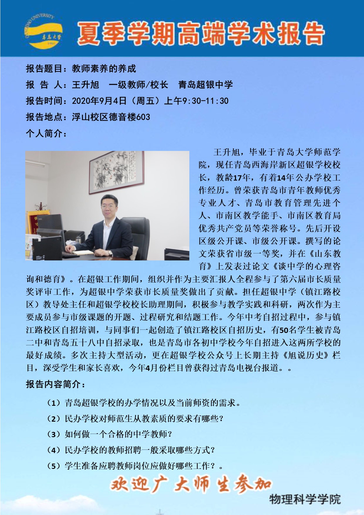 上一篇:夏季学期高端学术报告:把握当下,赢得人生