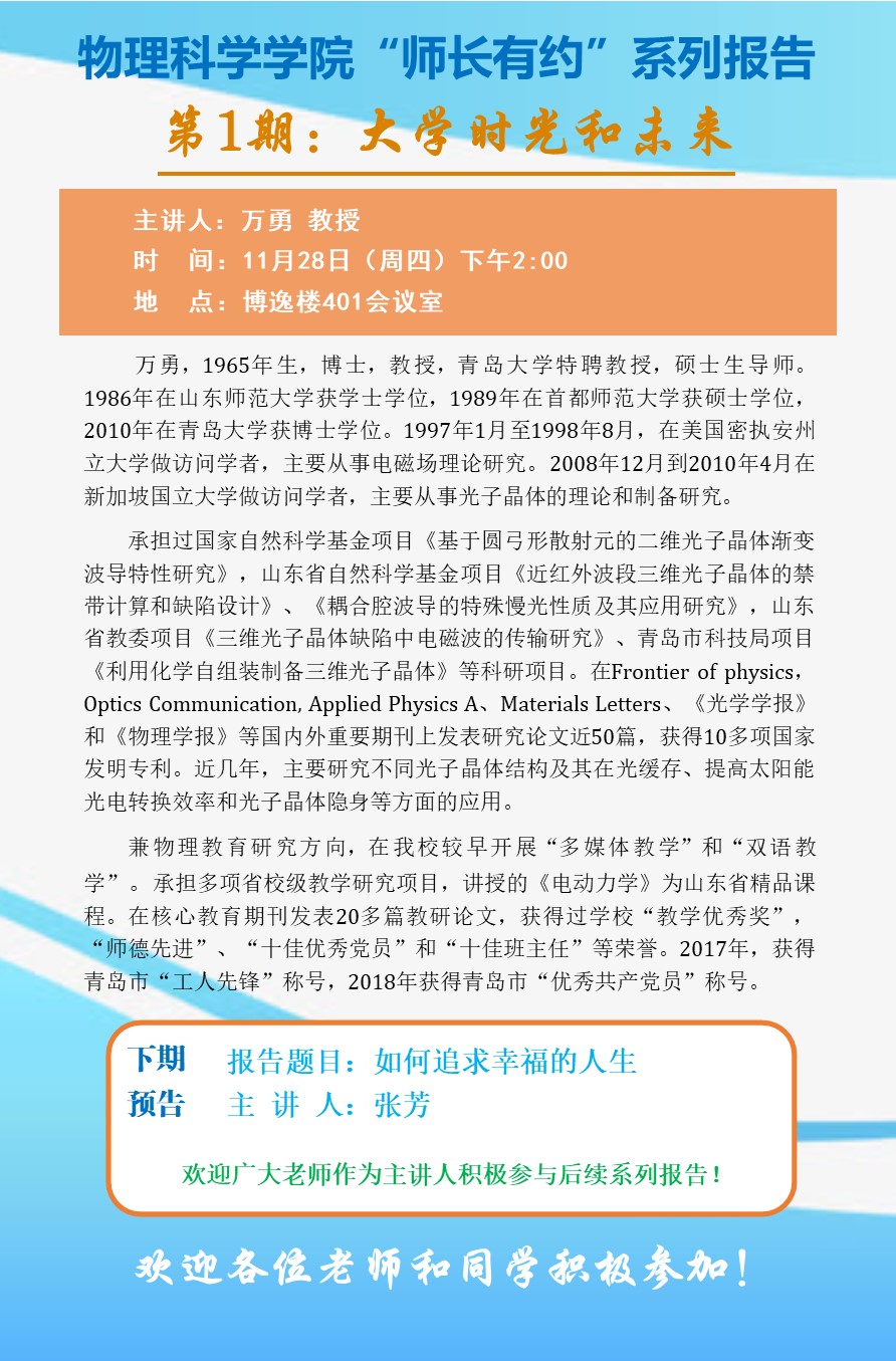 上一篇:“师长有约”系列报告2:如何追求幸福的人生