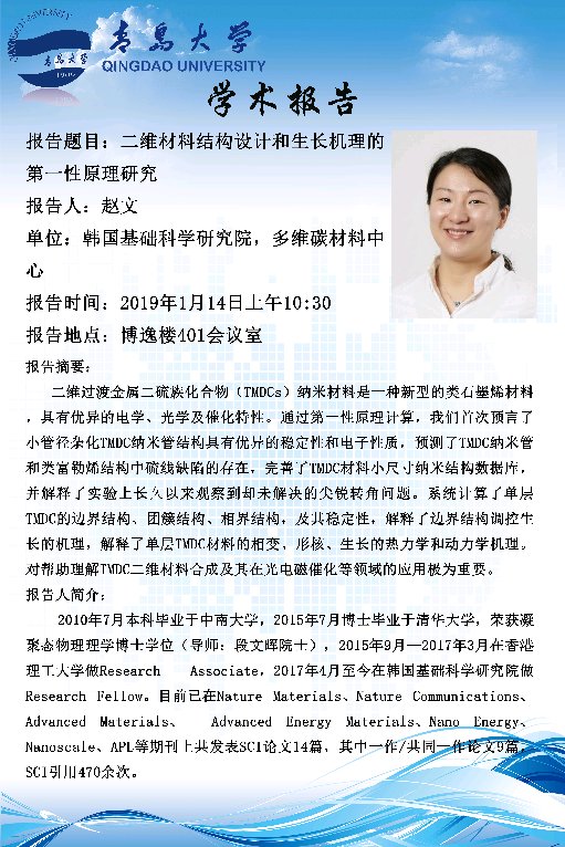 “新动能”物理学前沿学术报告1:二维材料结构设计和生长机理的第一性原理研究