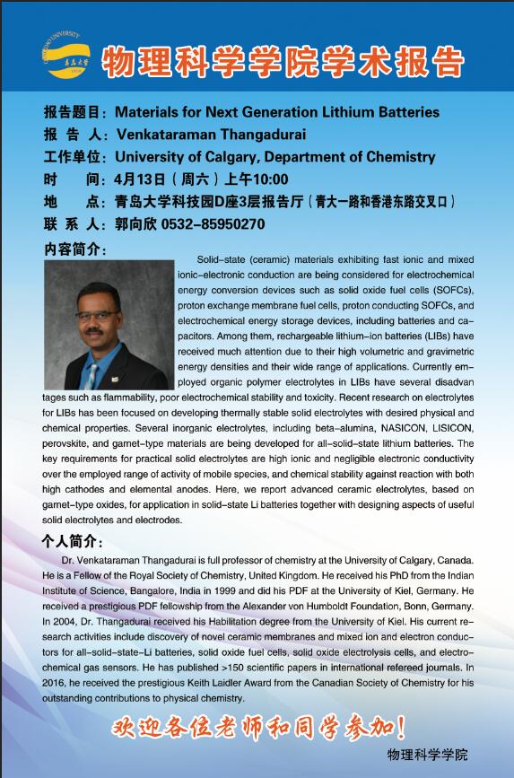 “新动能”物理学前沿学术报告3:Materials for Next Generation Lithium Batteries