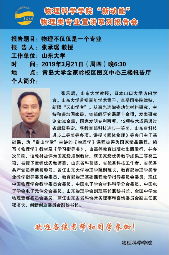 “新动能”物理类专业宣讲报告1:物理不仅仅是一个专业