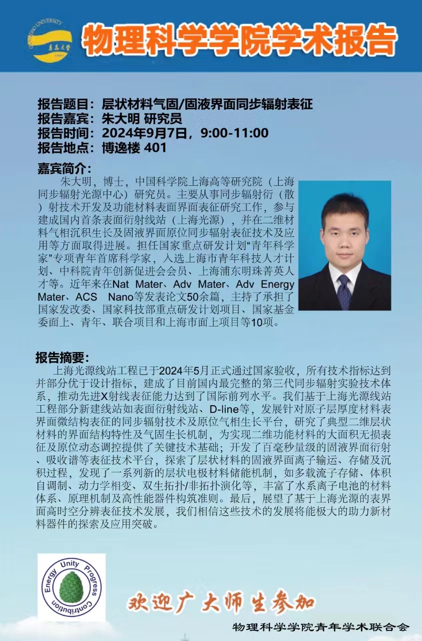 [学术预告]朱大明-层状材料气固/固液界面同步辐射表征