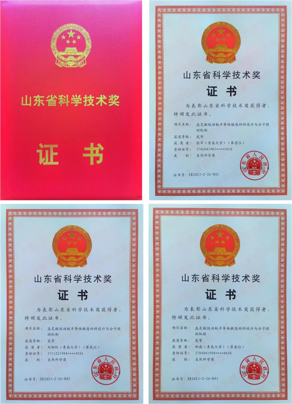 功能材料与器件团队张军教授、刘相红教授、郑威副教授等共同完成的研究成果“高灵敏低功耗半导体敏感材料设计与分子探测机制”荣获省自然科学二等奖。