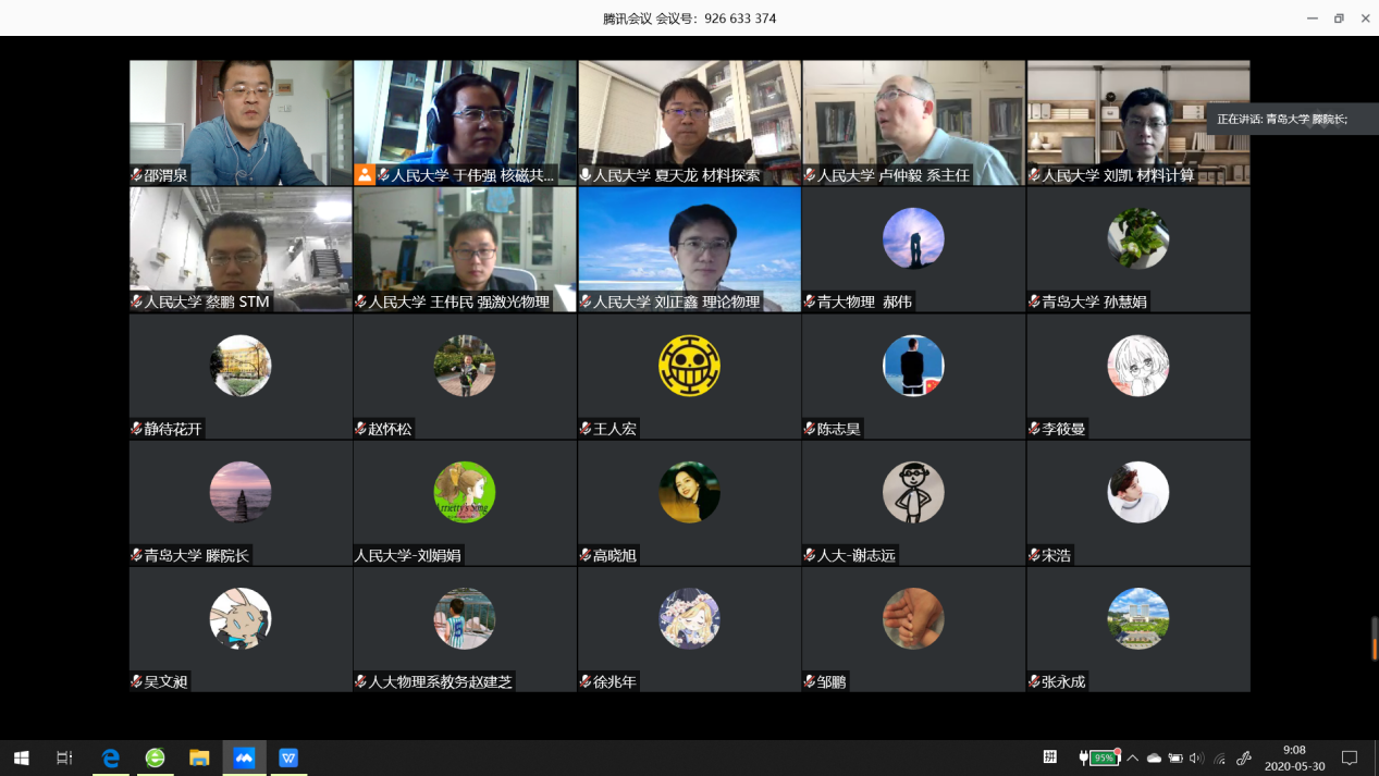 与中国人民大学物理系举行教学和人才培养交流视频会。中国人民大学物理系主任、2020国家自然科学奖二等奖获得者卢仲毅教授,物理系学术委员会主任于伟强教授以及其他骨干教师参加会议;我校h动漫