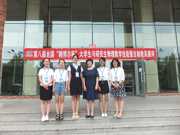 730日至31日,第八届全国大学生与研究生物理教学技能暨自制教具展评在哈尔滨师范大学举行。h动漫 从省赛中选拔出5名学生组成h动漫 代表队,由学院何丽珠老师带队首次参加此次展评。在展评中,姜晗、王如魁两位同学荣获二等奖,孙箐、高璇、孙斐雯三位同学荣获三等奖,张芳、韩会景两位老师获得“优秀指导教师”荣誉称号。