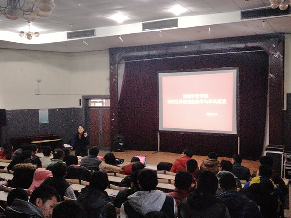 活动上,滕冰还介绍了学院重新修订的奖学金评审细则等内容,希望以此为导向扎实开展研究生培养各个环节的工作,努力实现培养高水平研究生的目标。她强调,研究生就学期间要在读100-200篇文献的基础上,充分了解国内外相关领域研究动态,为第三学期做好开题报告打下坚实基础,同时要总结前期实验工作,撰写科研论文,加强个人修养和团结协作,为第四学期在中期筛选中争取优秀创造条件。在研三年时间要勤奋拼搏,提前撰写至少两篇学术论文,并高水平完成毕业论文工作。这些要求使研究生明确了努力方向,对促进研究生学风建设具有重要的意义。