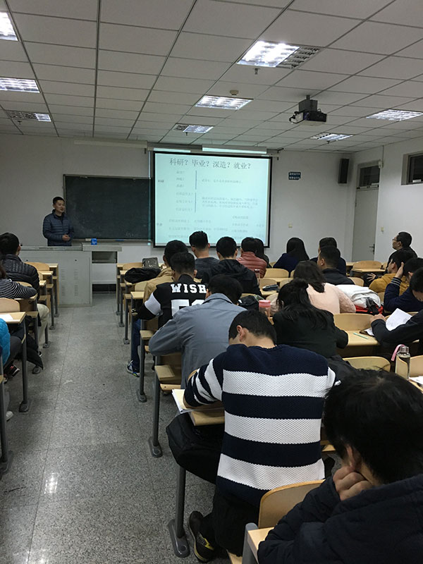2014级研究生董瑞华在浩园307教室作了题目为《原位电纺技术在生物医学领域的应用研究》的学术报告。学院2016级全体研究生共50余人参加了报告会。报告会由学院副院长滕冰教授主持。