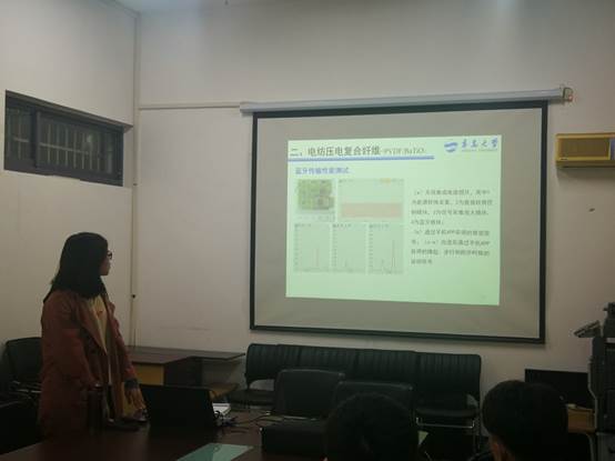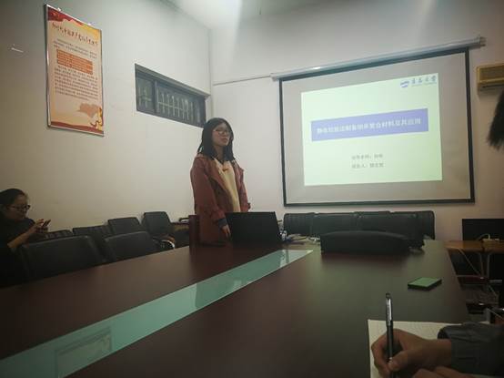 2016级研究生郭文哲在博逸楼401会议室作了题为《静电纺丝法制备纳米复合材料及其应用》的学术报告。学院2018级全体研究生参加了学术报告。报告会由胡琛老师主持。