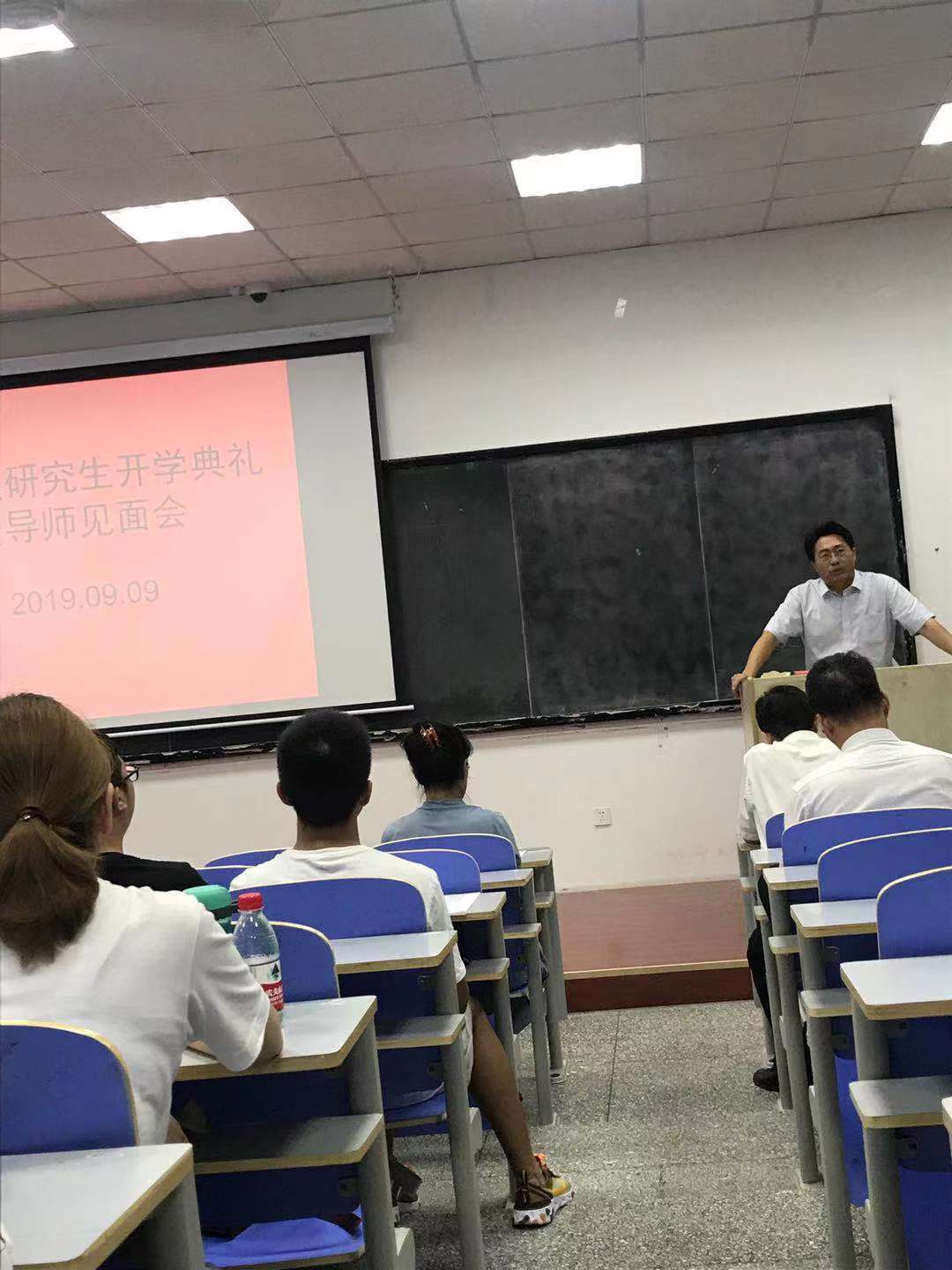 在博学楼101教室举行2019级研究生迎新暨导师见面会。院党委书记李升学、院长滕冰、党委副书记郝伟、副院长王乙潜出席见面会。优秀研究生导师代表云茂金教授、优秀学生代表杨婧男、2019级全体研究生及相关学生工作人员参加了会议。会议由王乙潜副院长主持。