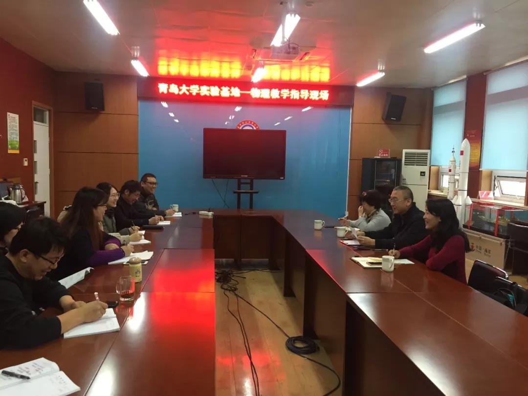 物理教育系张芳主任、青岛市教科院王㺸老师、崂山区研训中心初中物理教研员徐海虹老师和崂山七中的全体物理组教师参加听评课。