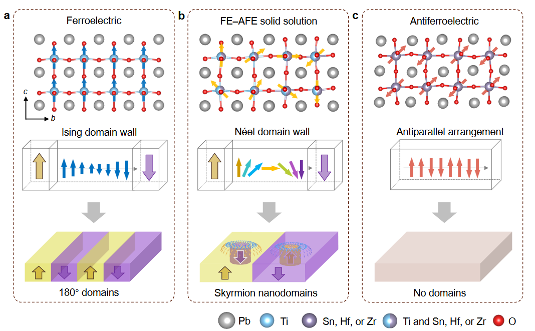物理学专业博士研究生郑维杰在导师温峥教授的指导下与南京大学杨玉荣课题组、邓昱课题组合作,在铁电畴结构和新一代信息技术上取得突破。相关研究成果以《Skyrmion nanodomains in ferroelectric-antiferroelectric solid solutions》为题于2025年4月15日在线发表在Nature Materials期刊。郑维杰为论文第一作者(共同第一位次),h动漫