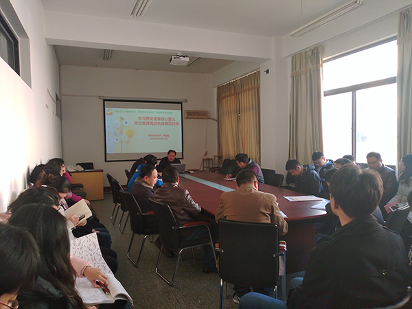 在博逸楼401会议室举行十九大党章专题学习会。这既是一次党的十九大精神宣讲会,也是一次党支部书记专题培训会和党员专题教育会。学院党政领导黄国俊、滕冰出席会议,党支部书记、教工党员和学生党员参加会议。会议由院党委书记黄国俊主持。