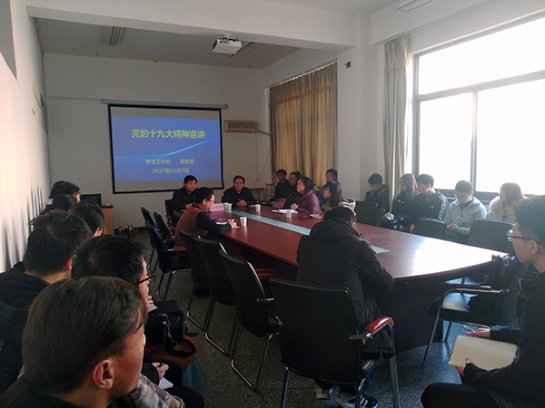 邀请学生工作处吴世珍处长在博逸楼401会议室为师生进行了十九大精神宣讲。院党委书记黄国俊、党委副书记周志强出席会议,会议由院党委书记黄国俊主持。