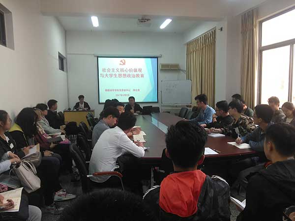 2017年春季学期入党积极分子培训班第三讲开讲,院党委副书记周志强在博逸楼401会议室为全体入党积极分子作了题为《社会主义核心价值观与大学生思想政治教育》的主题报告。