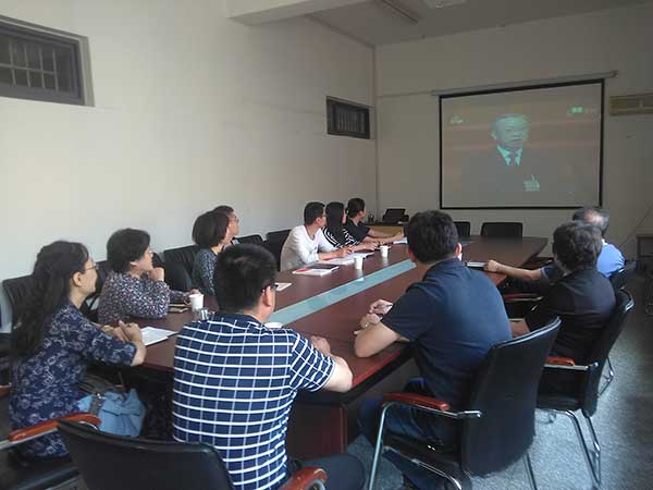 组织党员干部群众在博逸楼401会议室,统一收看山东省第十一次党代会开幕式实况。学院党政领导黄国俊、滕冰、周志强,各党支部书记,系(中心)主任,办公室工作人员等现场观看了开幕式实况。