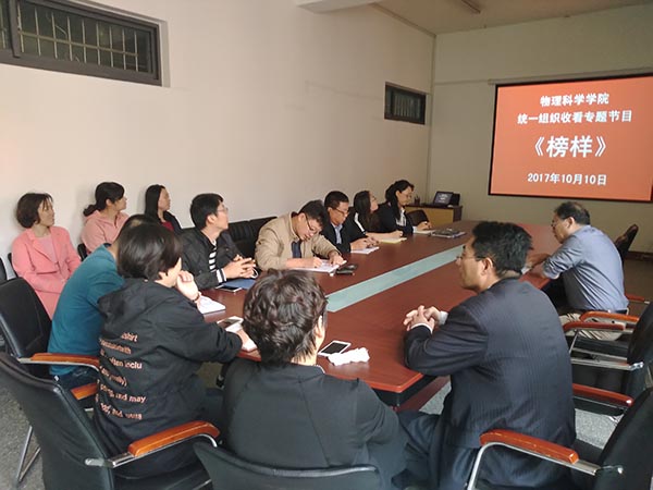组织部分党员干部群众在博逸楼401会议室,统一收看专题节目《榜样》。学院党政领导黄国俊、滕冰、周志强、王乙潜,各党支部书记,办公室工作人员等现场观看了专题节目。