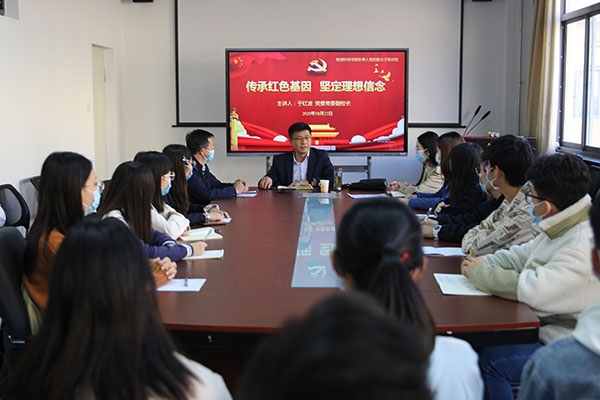 2020年秋季学期入党积极分子党课培训班正式开班。校党委常委、副校长于红波在博逸楼401会议室为入党积极分子主讲了题为《传承红色基因,坚定理想信念》的首场党课。院党委副书记郝伟、学生党支部副书记郝萍及43名入党积极分子参加了学习活动。