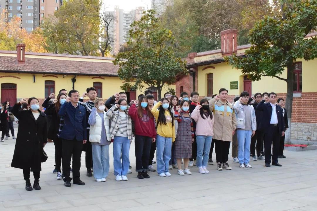 学生党支部在中共青岛党史纪念馆举行“学党史,温党誓” 主题党日活动暨新党员接收大会。院党委书记李升学,院党委副书记郝伟,学生党支部书记赵斐斐,辅导员韩章柱、李雪昕、侯美玲,部分学生党员参加了活动。