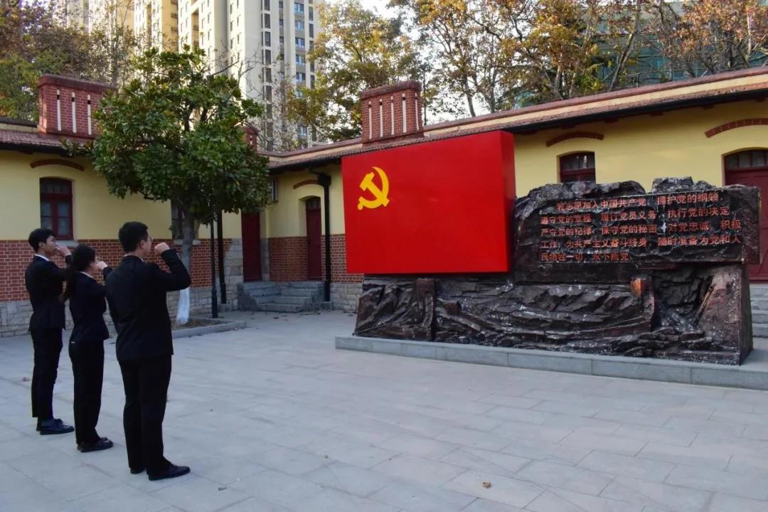 活动伊始,党员们在纪念馆会议室观看了青岛党史教育片《引领》,一起回顾了中国共产党的党情党史,充分了解了在一批批优秀共产党员的努力奋斗下,青岛从追梦到筑梦再到逐步实现梦想的光辉历程。随后,召开了党员大会,按照程序接受三名同志为预备党员。三名新党员在党旗下庄严宣誓,全体党员们也重温了入党誓词。