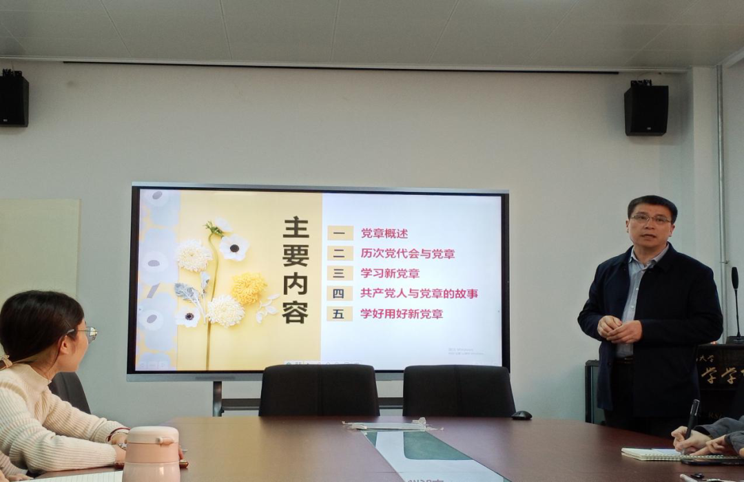 本次党课主要围绕党章的基本内涵、历次党代会与党章的关系、党章的内容、共产党人与党章的故事、学习用好新党章五个方面内容展开。