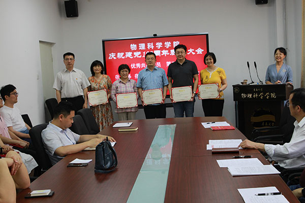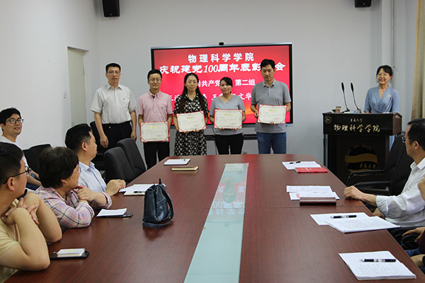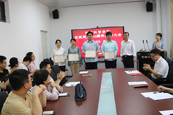 会上,应用物理系党支部书记李延强代表院优秀党务工作者、物理教育系主任张芳代表院优秀教师共产党员、研究生田雪代表优秀学生共产党员分别作了发言。