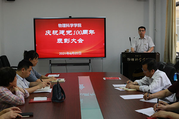 在博逸楼401会议室举行庆祝建党100周年表彰大会。院党委书记李升学,院党委副书记、院长滕冰,院党委副书记郝伟,副院长龙云泽出席会议,会议由滕冰主持。院长助理、各党支部书记及支部委员、受表彰人员、教师党员以及学生党员代表参加会议。