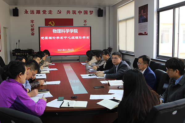 在博逸楼401会议室举行党委理论学习中心组(扩大)理论学习会。会议由院党委书记李升学院主持,学院党政领导李升学、滕冰、郝伟、龙云泽,院长助理以及其他党委委员、党支部书记、辅导员参加学习。